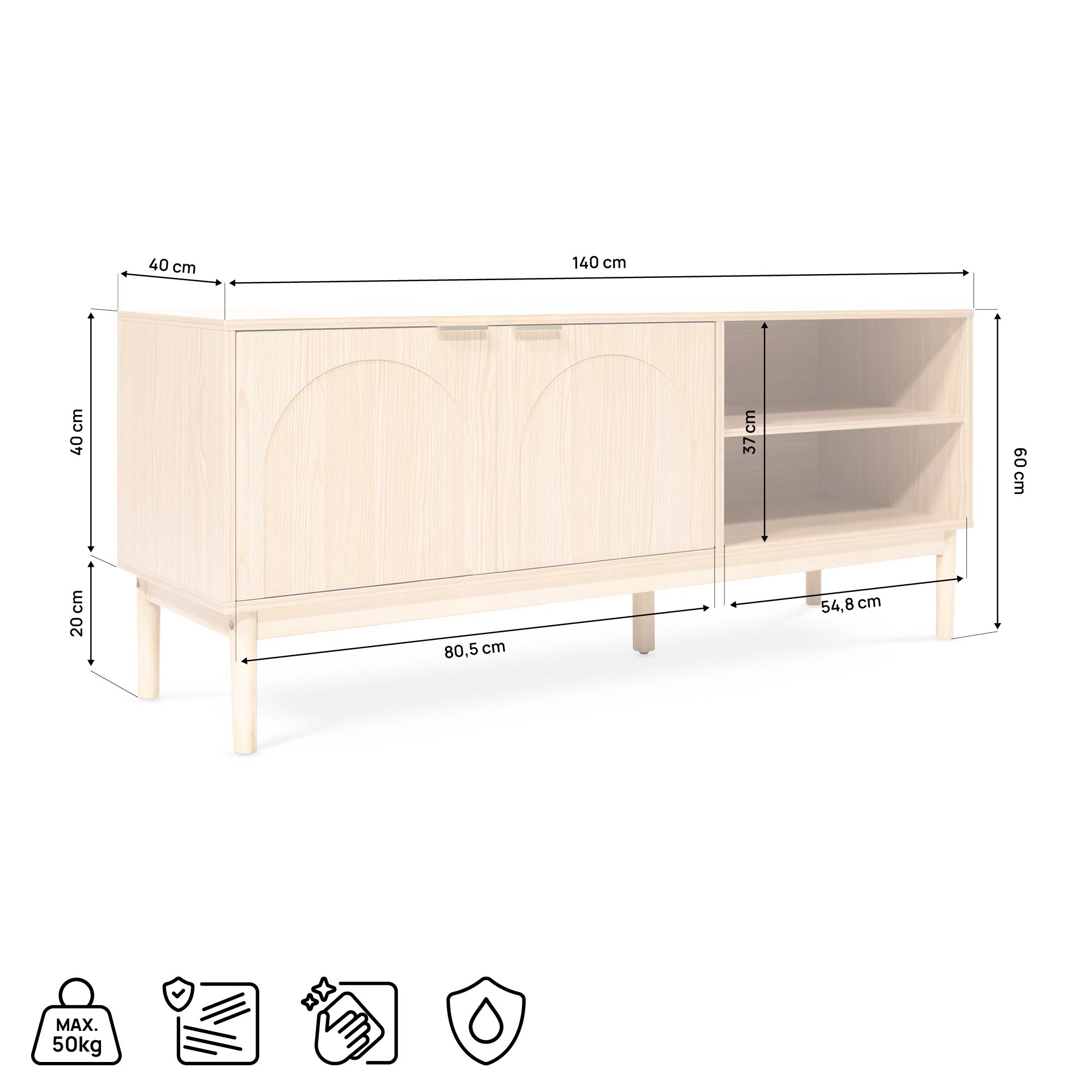 TV-meubel 140cm 2 deuren, Eiken afwerking NOLAN
